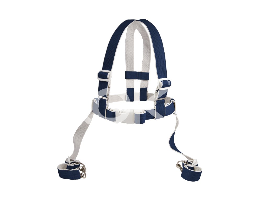 Návod: Dětské bezpečnostní popruhy nasadíme na ramena dítěte a zapneme nastavitelný pásek v pase dítěte. Ramenový popruh zkrátíme, pomocí průvlečné spony tak, aby přesně kopíroval postavu dítěte. Konce upínacích popruhů jsou opatřeny karabinami a popruhem ukončeným kovovým polokroužkem. Ke konstrukci kočárku výrobek připevníme buď karabinou, nebo provlečeme popruh ukončený polokroužkem kolem konstrukce kočárku a zapneme polokroužek do karabiny. Délku upínacích popruhů zkrátíme pomocí průvlečné spony tak, aby byl omezen pohyb dítěte do polohy, při které by vzniklo riziko jeho vypadnutí nebo převážení z kočárku/židličky.